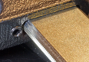 Bessey Rapid Action ClampThe new twist is no twist!Text, photos and video by Tom Hintz Posted – 9-14-2012 One of the more frustrating traits of clamps that use a rotating spindle to apply pressure has been applying some amount of rotational forces on the pieces being clamped in the process. Even modest rotational forces can cause the pieces we are trying to hold in place to move out of position, especially if they have glue between them. When the pieces shift we are forced to stop applying pressure, re-align the parts and then add pressure again and hope no further movement is caused. The Bessey Rapid Action Clamp eliminates the rotational forces entirely and that can make your clamping way easier and faster. The BasicsThe Bessey Rapid Action Clamps are based on the proven Bessey bar clamp technology. The upper fixed and moveable pressure arms are ruggedly formed from iron. The steel bar on which they are mounted is drawn from Bessey’s own steel from their German facilities to insure optimum strength and rigidity. The bars are serrated on one edge to interact with the hardened setscrew in the pressure jaw that eliminates slippage under pressure. Isolating the TwistThe new part of the Bessey Rapid Action Clamp is the mechanism that converts the rotation of the threaded spindle to a non-turning cylinder that makes contact with the material and applies the pressure. Below the moveable jaw we still see the precisely formed threads on a spindle that uses a sliding Tommy bar handle to increase leverage. However, above the moveable jaw a cylinder emerges from the boss as the threaded spindle is turned. This cylinder has no rotation at all so there is no rotational force to be transferred to the pieces being clamped. The end of the cylinder has a heavy round plastic non-marring cover that is free to rotate on the cylinder to further isolate it if you inadvertently rotate the whole clamp.