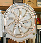 All of the wheels and pulleys are nicely made and show no signs of wobble or vibration. The blade wheels were checked after installing the riser kit and found to be coplanar. They required no alignment other than a small tracking adjustment to the top wheel. After using the Delta X5 #28-475X with the 3/8"-wide blade, I changed to a ¾"-wide blade and found that it also tracked perfectly with no adjustment needed.