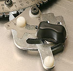 A key to the accuracy and repeatability of the AngleLOCK™ system is the actuator that mechanically indexes the degree notches the same way every time. The actuator has its own pivot and locking knob so the tooth that engages the protractor head notches can be locked in a notch or away when custom settings are required.