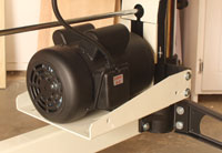 Efficient sanding machines generate lots of dust. The JET 22-44 Pro-3 Drum Sander has a full-width hinged shroud surrounding the drum. The outfeed side of the shroud has a 4"-diameter port that makes it easy to connect a real dust collector. During the evaluation I connected my POWERMATIC PM1300 dust collector and the shop stayed remarkably clean. The shroud looks kind of typical but works very well. Power and ControlThe JET 22-44 Pro-3 Drum Sander has two motors. A 3 HP TEFC (totally enclosed fan cooled) 1 phase, 230V (only) motor drives the sanding drum. Keep in mind that JET rates their motors using a continuous duty cycle rather than the always suspicious "peak" or "maximum developed" figures some companies continue to float around. Aside from true power ratings, this continuous duty cycle design means the motor labors less and lives way longer even under heavy wood shop usage.