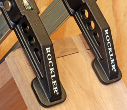 Rockler Sure-Foot™ F-Style ClampsThese clamps stand on their own so that you can work easierText, photos and video by Tom Hintz Posted – 5-5-2011 F-Style clamps have been popular with woodworkers for a long time because of their reach that allows them to apply pressure where you need it on a wide range of projects. The design of F-style clamps lets them hold the project while the glue dries or while you install fasteners. Rockler tweaked the F-style clamp design and came up with their Sure-Foot™ F-Style Clamps that make working in the shop easier, especially when you are alone. The Basics The Rockler Sure-Foot™ F-Style Clamps are built around all Zinc-plated steel bars that are formed with an I-beam style profile that dramatically increases their rigidity. The top and bottom edges of the bars have serrations that interact with the locking plates within the moveable jaw to produce a slip-free grip when clamping pressure is applied.