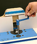Bit height is adjusted by inserting the included crank in a socket on the top of the lift plate. A re-positionable scale ring surrounding the crank socket allows re-setting the "zero" position to use the clearly marked graduations to make even tiny bit height changes with extreme accuracy.