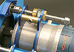 Precision-machined from 6061 aluminum, the lift mechanism is surprisingly simple in design but very accurate and tough. The mechanism, equipped with long oil-less bushings, slides on a pair of precision-ground 5/8"-diameter columns. The clamping plates are also secured to the threaded height adjustment rod, effectively triangulating the mechanism and making it exceptionally rigid.