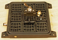There is only one vacuum passage in each active side of the V-Clamp. This hole is located in a corner so the surface can be configured to be compatible with the widest range of work piece shapes and sizes. The grids on the surface allow routing the gasket to best fit the piece being worked on. Though plugging a vacuum passage with dust would be a natural concern in a woodworking shop, the principle on which the V-Clamp works makes clearing that passage as easy as putting your finger over the exhaust hole while air pressure is supplied to the unit. Poof (literally) and the offending debris is ejected from the vacuum hole. The V-Clamp is available in two versions. Both are 6.3" square and 1" thick. The VC4 is single sided and is mounted to a surface with a screw in each of four molded-in tabs at the corners. One side (upper) has the vacuum grid. The VC4 has the interesting capability of being mounted to a vertical surface for when holding the work piece vertically is a helpful.