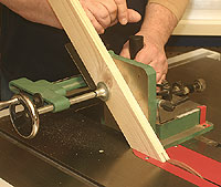 The goal is to size the groove so that the piece to be installed in it slips in easily without excess clearance. Like any other interior panel, the pieces that fit into the grooves will normally float free with no glue used to secure it. Getting the right fit is important. Splined Miter JointsThis grooving technique is frequently used to install splines in the mitered joints of a frame or similar project. It is important to note that trying to guide the mitered end of the wood over a table saw blade by hand is very dangerous not to mention highly inaccurate.