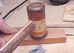 Then, place a flat piece of hardwood, larger than the inlay piece, on the inlay and whack it with a mallet. One or two moderate blows should seat the inlay completely. Remember that the glue will hold the inlay piece slightly proud of the surface and beating it further only serves to damage the surface. Let the glue set up and then sand the piece flush with the surrounding surface.