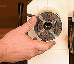 This should be all that is needed to lock the chuck onto the spindle. Everything you do when using the chuck tends to tighten it more. Woodturning lathes and chucks are expensive making it well worth your time to treat them right. Installing and removing the lathe chuck need not be a damaging experience, or a frustrating one. Take your time, follow the procedure described here and your chuck, and you, will remain undamaged. |